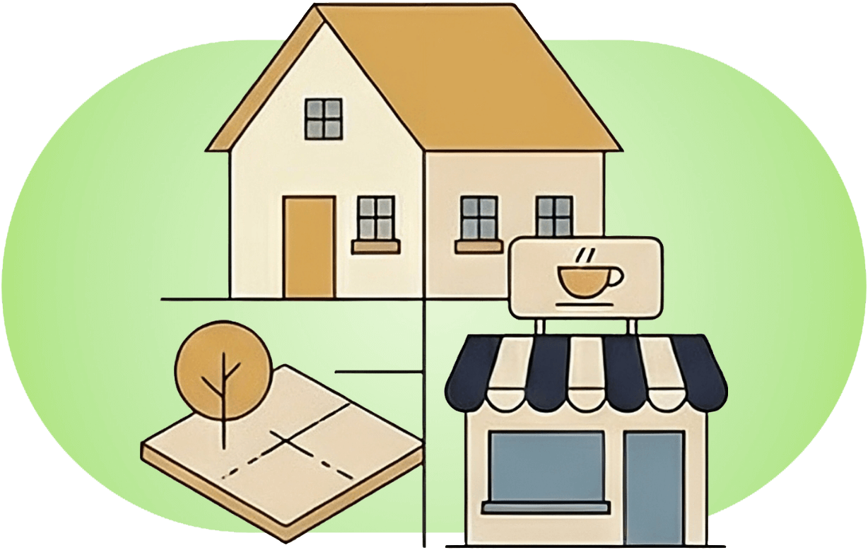 Beni immobili come abitazioni, terreni, locali commerciali.