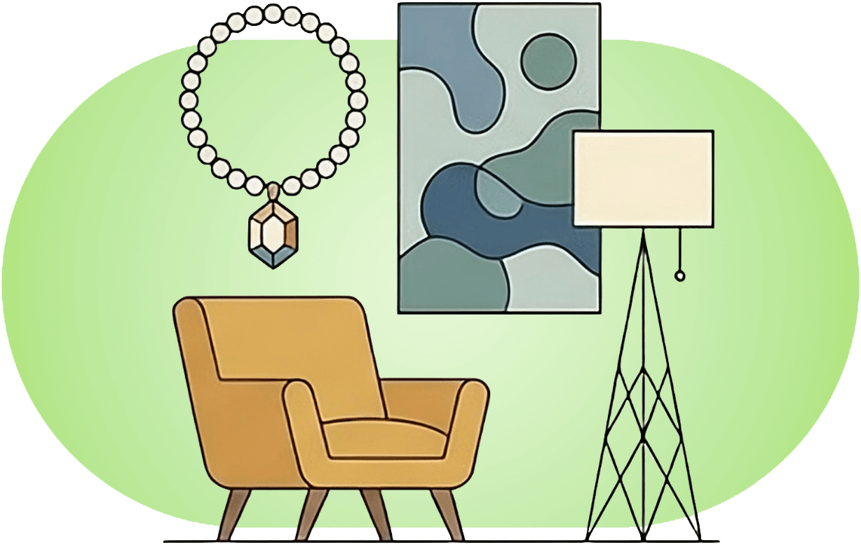 Beni mobili come gioielli, opere d’arte, arredi e oggetti di design.